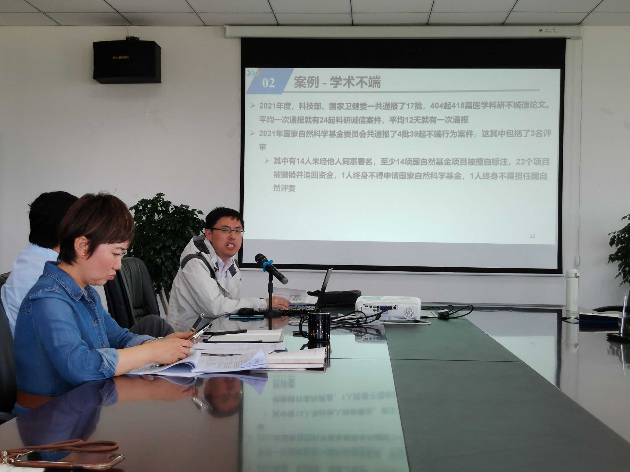 在主题培训中,马副院长首先解释了学术诚信、学术不端的含义,以及什么是学术不当;随后,他结合《高等学校教师职业道德规范》《新时代高校教师职业行为十项准则》《教育部关于高校教师师德失范行为处理的指导意见》等文件中对学术诚信的要求和处理办法进行了重点强调和阐释;最后,他精选了国内、外典型案例中有关学术不端、伪造、非主观造假、剽窃、抄袭等学术诚信问题对老师们进行警示教育,强调遵守学术诚信的重要性以及违背学术诚信的严重后果。