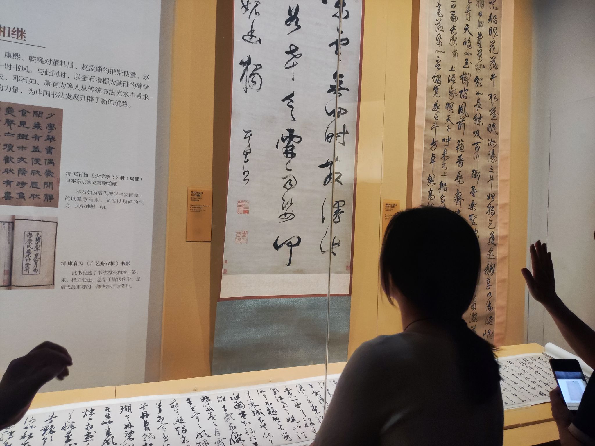 位于博物馆一楼的展览“汉字中国—方正之间的中华文明”主要介绍了汉字的历史和演变,以及汉字在中国文化中的重要地位。展览从目前所知最早的汉字源头“贾湖刻符龟甲”开始,经过青铜铭文、秦统一文字,到书法名家辈出,展示了众多传世真迹,例如柳公权《玄秘塔碑》拓片、黄庭坚楷书《狄梁公碑册》、赵孟頫章草书《急就章册》、辛弃疾唯一传世真迹《去国帖》等。该展览是成都博物馆建馆以来水平最高、珍贵文物占比最重的展览,通过汉字的起源和变化让观众们了解汉字的文化内涵和发展,触摸中华文脉的发展和赓续,增强文化自信自强。
