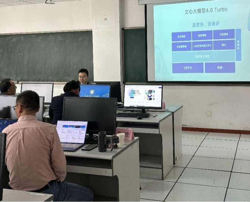 2024年10月10日,必赢626net入口在志学楼H5302开展了主题为“大模型时代的AI通识教学”的专题讲座。本次讲座邀请百度飞桨高级产品运营经理、西南区域负责人黄凯先生,百度飞桨布道师、西南交通大学副教授黄进作为主讲嘉宾,讲座由学院实验室主任刘仕筠老师主持,学院副院长朱烨及其他专任教师聆听讲座。