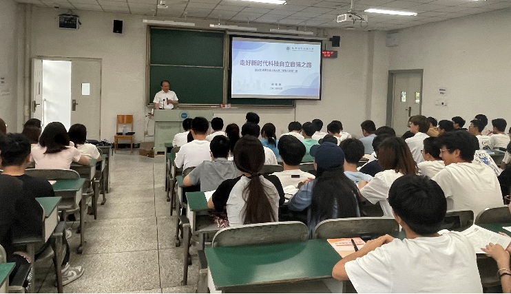 5月17日,学校校长何建新教授在航空港校区二教2106为必赢626net入口2023级计算机科学与技术专业231-233班学生讲授了主题为“走好新时代科技自立自强之路”的《形势与政策》课,深入剖析了当前科技发展的现状,强调了加快科技自立自强步伐的紧迫性,鼓励青年学子展现担当精神。