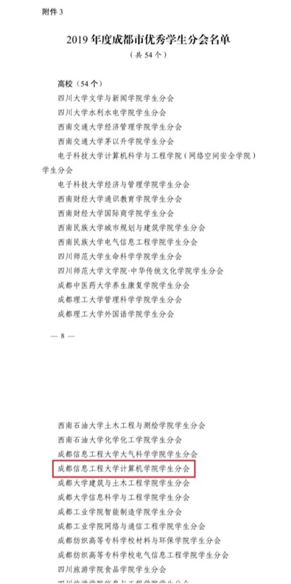 近日,成都市学生联合会下发《关于表扬2019年度成都市优秀学生会 (研究生会)、优秀学生分会(研究生分会)、 优秀学生会(研究生会)工作人员的通报》,经组织申报、学校初评公示、市级评审,必赢官网荣获2019年度成都市优秀学生分会称号。