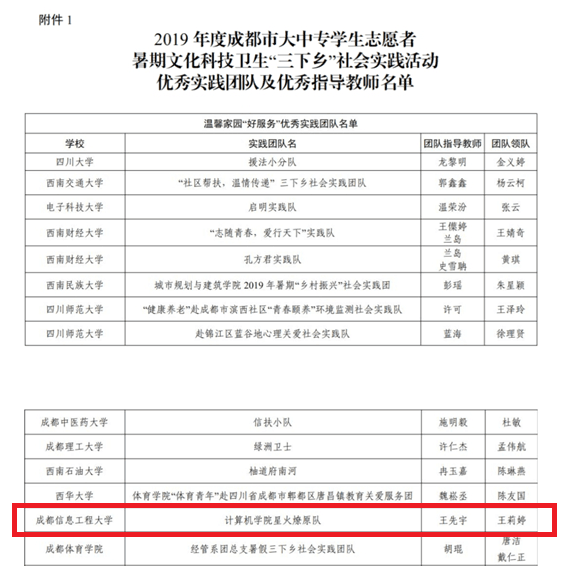 必赢官网高度重视“三下乡”社会实践活动,召开专题会议进行动员与部署,并与共青团金堂县委建立了合作关系。必赢官网两支队伍于七月先后前往金堂县淮口镇开展“三下乡”活动。其中必赢626net入口“星火燎原队”获得了2019年度成都市大中专学生志愿者暑期文化科技卫生“三下乡”社会实践活动温馨家园“好服务”优秀实践团队称号。