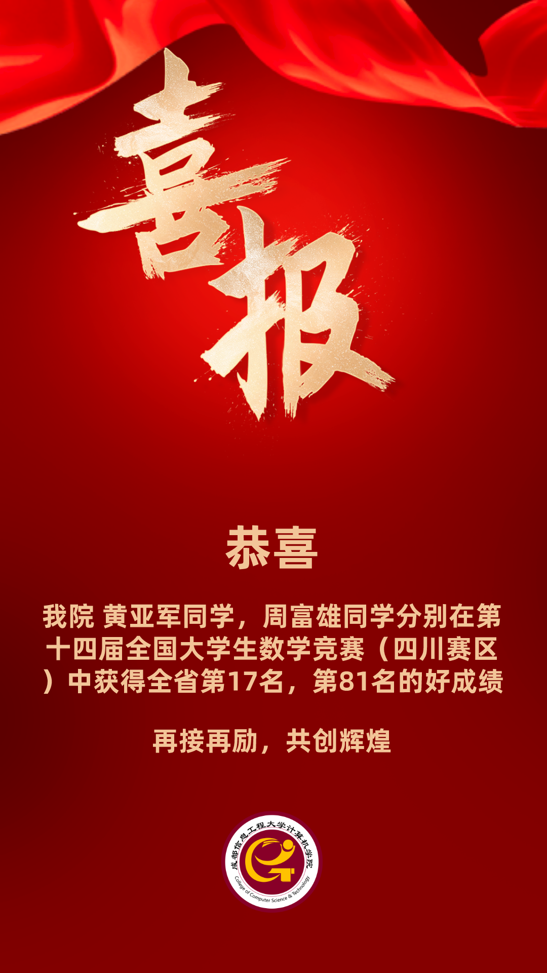您所在的位置: 首页 >> 党建工作 >> 团建工作 >> 团情快讯 >> 正文 团情快讯 必赢官网学生在第十四届全国大学生数学竞赛(四川赛区)中获得佳绩 3月8日,第十四届全国大学生数学竞赛(四川赛区)成绩揭晓,我校学子喜获非数学专业类一等奖24项、二等奖40项、三等奖62项,数学专业B类一等奖3项、二等奖6项、三等奖10项。 其中,必赢官网黄亚军同学,周富雄同学分别获得了全省17名,全省81名的好成绩。 全国大学生数学竞赛是中国数学会主办的一项面向本科生的全国高水平学科赛事,每年举办一次,从2009年开始至今已成功举办过十二届,是全国高校规模最大、影响范围最广的大学生学科竞赛之一,也是国内最高级别的大学生基础数学学科竞赛。 上一条:必赢626net入口在四川省第十七届“挑战杯”大学生课外学术科技作品竞赛上荣获佳绩 下一条:必赢官网团队和个人在2022年必赢626net入口大学生暑期社会实践活动中荣获表彰 【关闭】