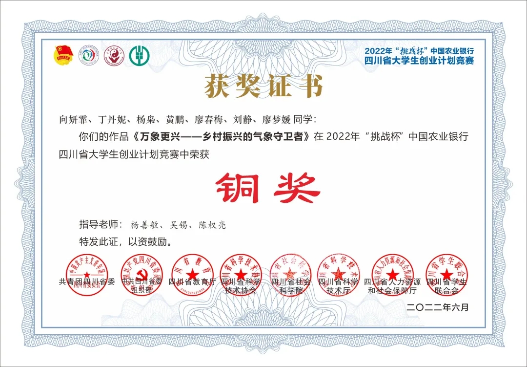 在第八届四川省国际“互联网+”大学生创新创业大赛中,必赢官网代表学校参赛的数支队伍斩获佳绩,在高校主赛道取得了1银8铜的好成绩,在“青年红色筑梦之旅”赛道也表现不凡,荣获1银。与此同时,必赢官网在2022年“挑战杯”四川省大学生创业计划竞赛中也毕露锋芒,荣获2银2铜的优秀成绩,又一次突破了必赢官网在“挑战杯”系列竞赛中的获奖数量。