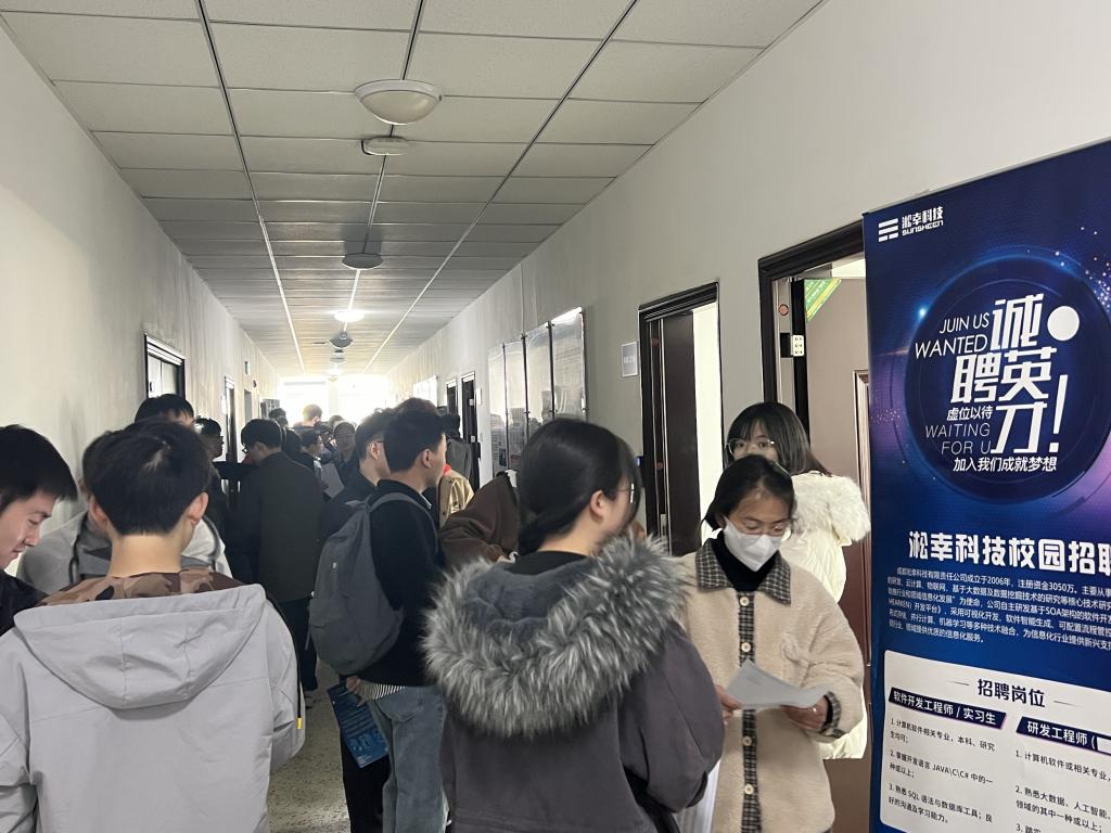 双选会现场,部分用人单位通过现场面试、当场笔试等环节对前来应聘的同学进行初步了解和筛选。高效的招聘方式、面对面的沟通机会使得现场求职气氛更加热烈,前来应聘的同学们积极与用人单位交流沟通,主动了解用人单位需求,结合自身能力和职业规划选择意向单位、岗位参与应聘。此次线下双选会为用人单位和毕业生们提供了现场交流及双向选择的机会,受到了用人单位和参会同学的广泛欢迎和充分肯定。据统计,双选会共吸引300余名同学参加,现场共收到简历200余份。