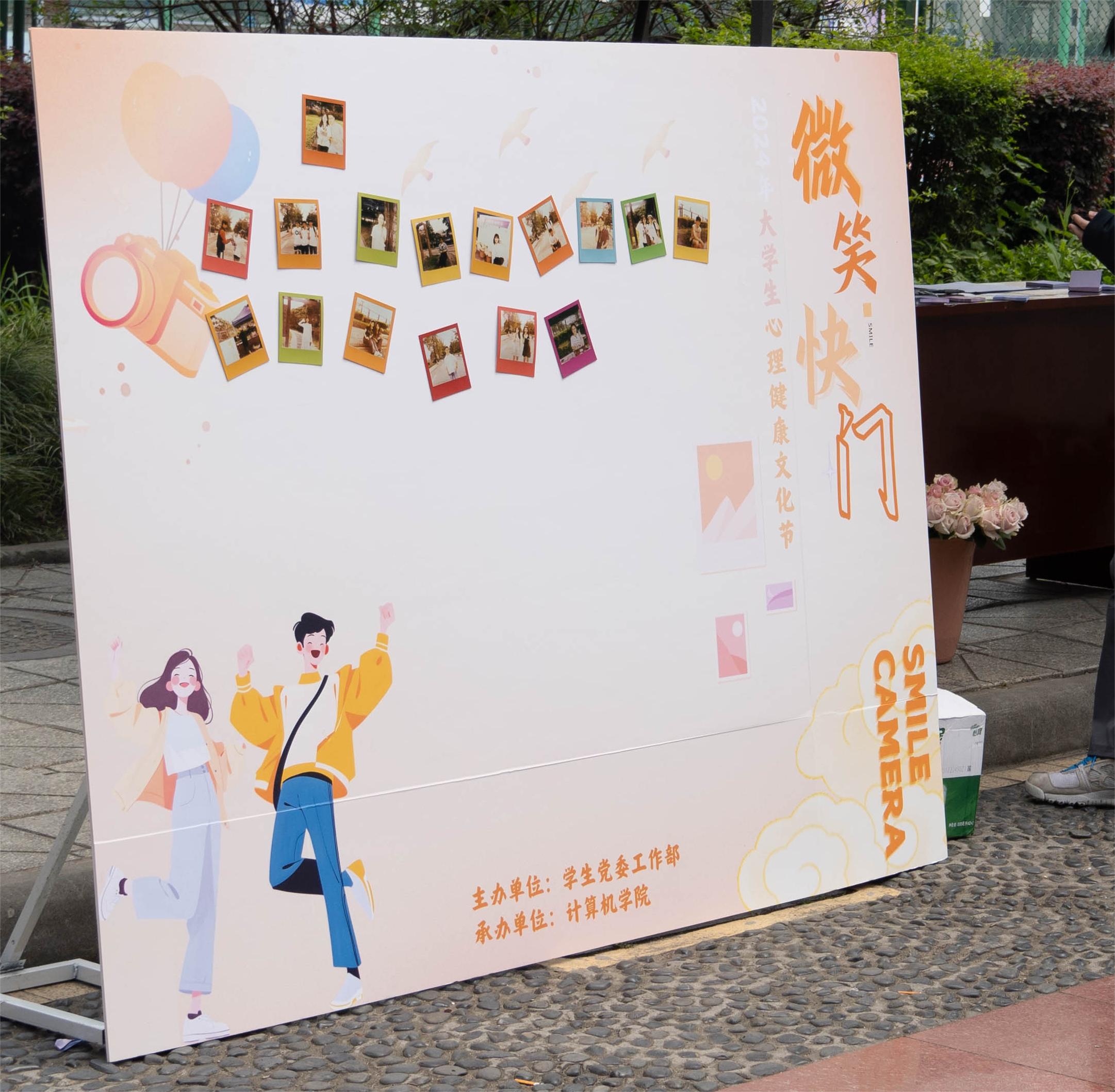 “微笑快门”以微笑为主题,通过拍立得相机记录下同学们灿烂的笑容,传递出积极向上的生活态度。活动现场,同学们纷纷驻足于“微笑快门”区域,面对着拍立得相机,露出了最灿烂的笑容。按下快门的瞬间,他们的笑脸被定格在照片上,成为了永恒的回忆。粘贴墙上的相片留住了同学们最真挚、最温暖的微笑,每一张照片都充满了青春的活力,传递这微笑的力量。