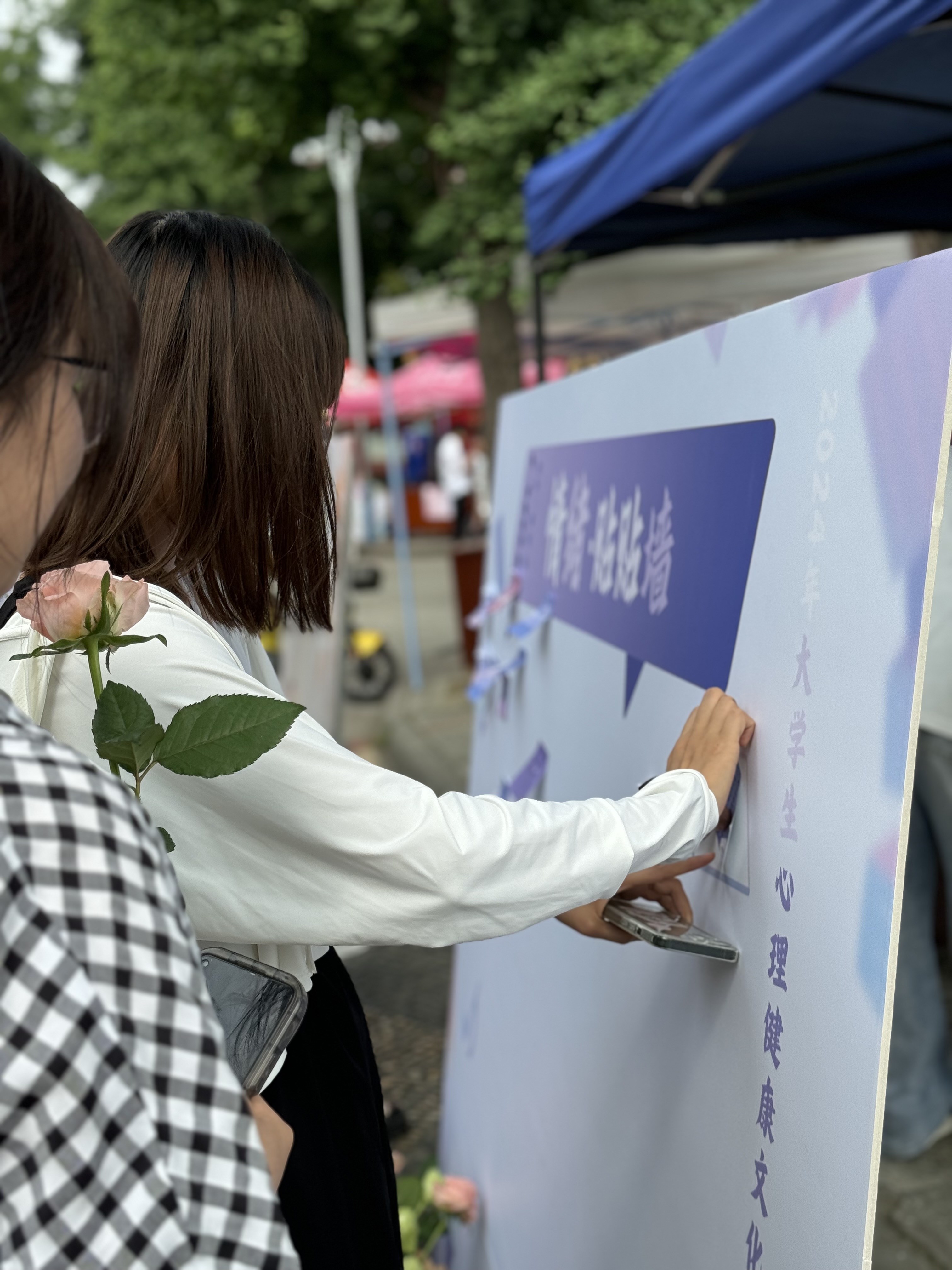 “情绪贴贴墙”吸引了同学们纷纷前往,他们在这里书写自己的情绪,分享自己的心情故事。情绪贴纸有的诉说着快乐,有的诉说着忧郁,还有的传达着兴奋和激动。通过书写情绪、分享情绪,同学们可以直面自己的情感,与压力“和解”,和乐观“牵手”,情绪贴贴墙成为了同学们表达情感、传递温暖的一种方式。