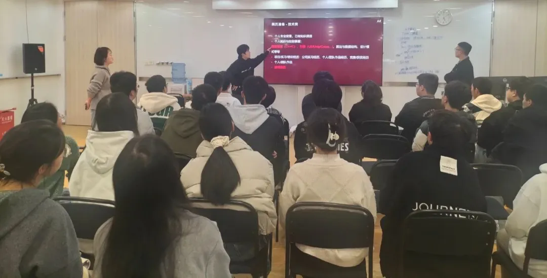参观结束后,公司的项目组策划和主程老师为同学们未来就业进行了指导与分享。他们从自身的职业经历、就业技巧到职业规划做了分享,并鼓励同学们勇敢追求梦想,在校学好专业基础,不断提升自我。交流环节中,同学们积极提问,就游戏研发、职业发展等方面进行了探讨。