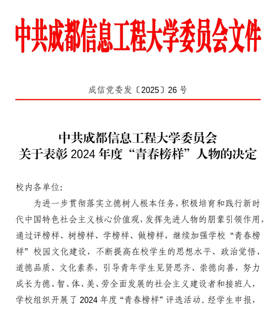 未来,必赢官网将继续以“青春榜样”评选活动为契机,发挥朋辈榜样力量,推动形成积极向上、奋勇争先的良好氛围,助力更多计算机学子在榜样的引领下实现人生目标,为国家和社会的发展贡献青春力量。