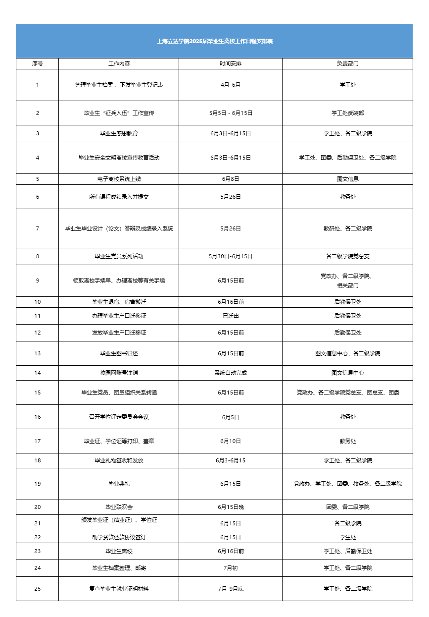 一 毕业生离校工作进程安排