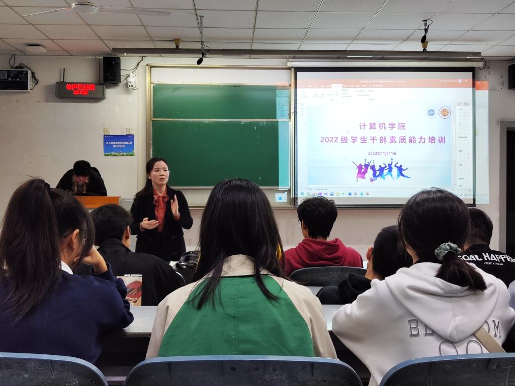 11月11日傍晚19点,必赢626net入口2022级学生干部素质能力培训会在1207教室顺利举行。本次培训会由必赢626net入口2022级辅导员罗茜主持,学院团委副书记伍林丰、学生会主席吴晨芃、青志协会长杨亚铮、2019级5班团支书曾欣参加,2022级全体班委参与培训。计科195班团支书曾欣,曾荣获学校“青春榜样十佳团支书”,她着重强调班委们…[详细] 2022年11月21日