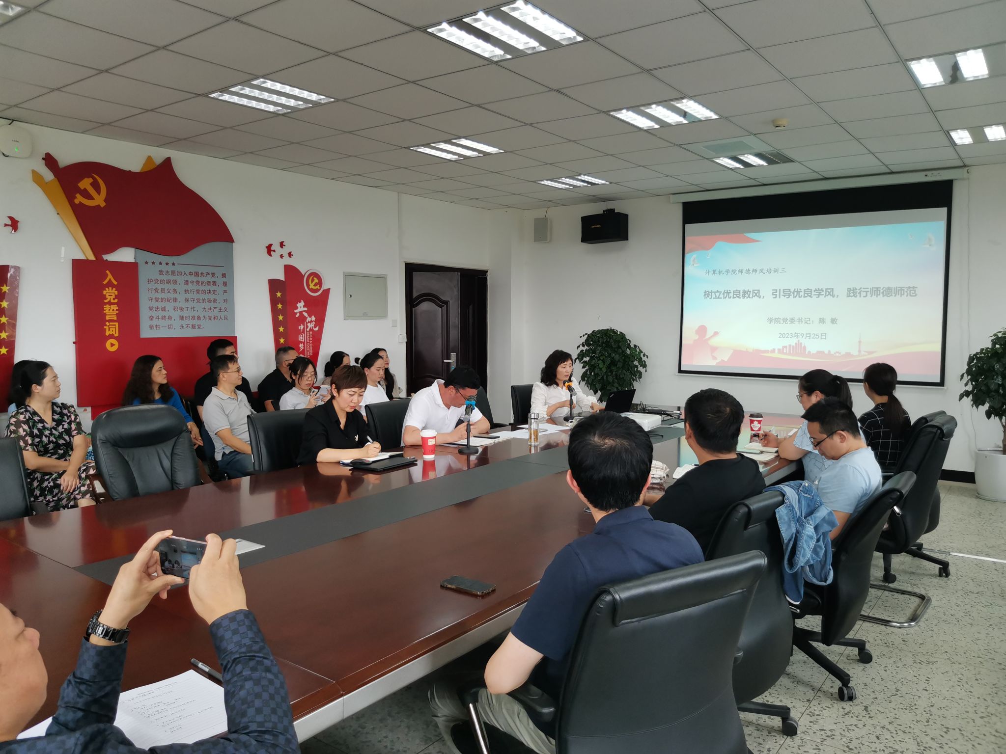 为不断加强学院师德师风建设,必赢626net入口于2023年9月25日下午在信达楼A311对全体教师开展德师风专题培训,培训主题为:树立优良教风、引导优良学风、践行师德师风,培训会由学院党委书记陈敏主讲。培训会现场首先,陈敏书记带领全体教师再次领悟了学校“爱生、敬业、求实、创新”教风的深刻内涵,并要求老师们在工作中要…[详细] 2023年09月25日