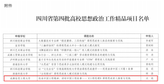 必赢官网沈艳老师项目获批第四批四川省高校思政工作精品项目